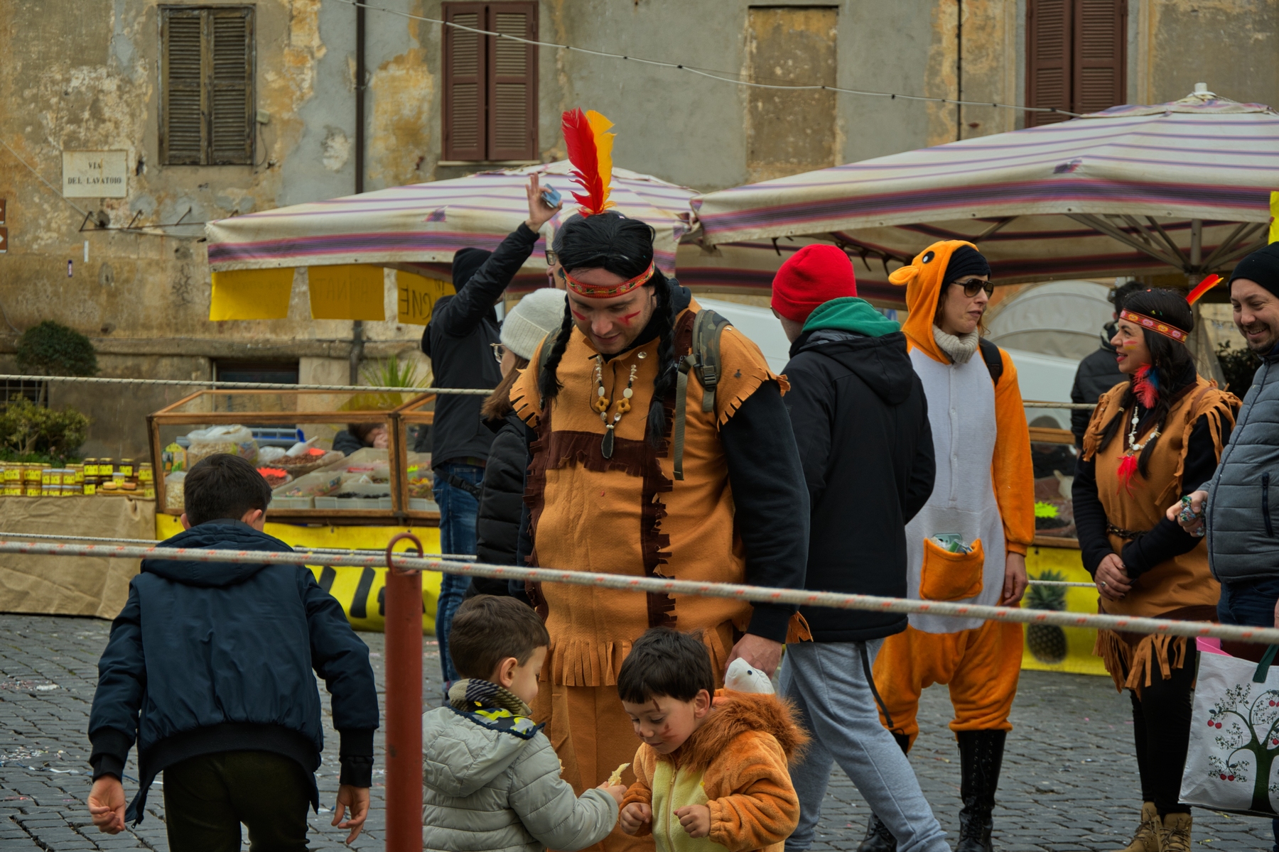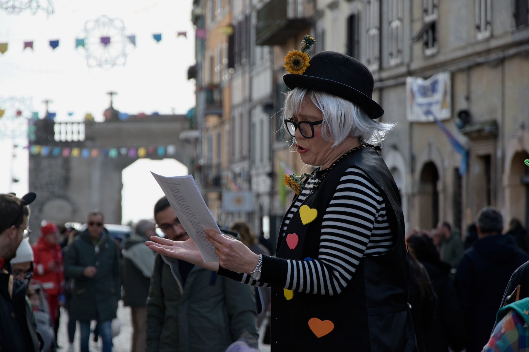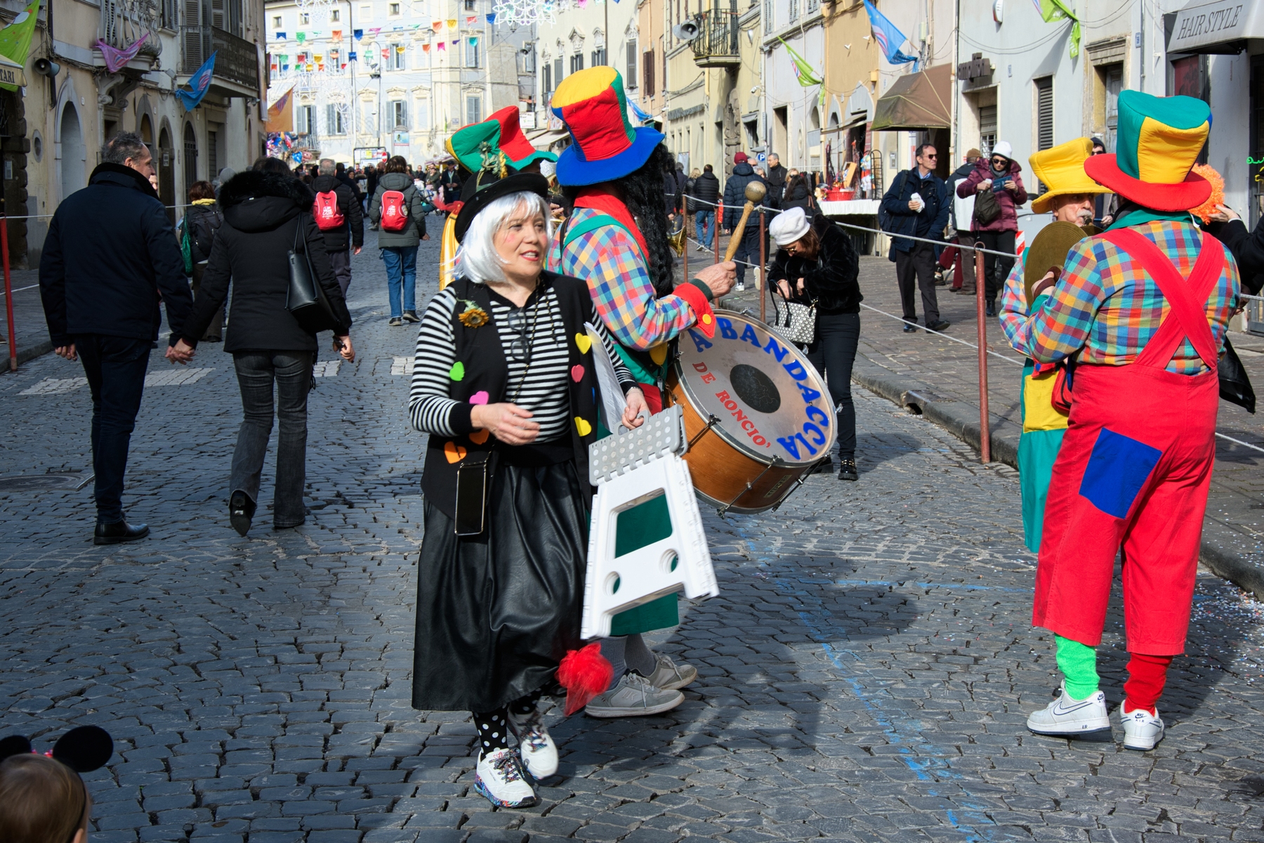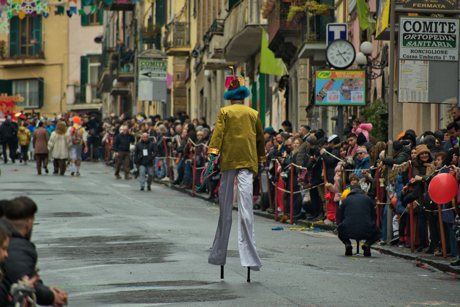 Una giornata carnevalesca, nel bel paese di Ronciglione (Lazio, VT), attendendo la sfilata dei carri e delle maschere, per strada, tra la gente.