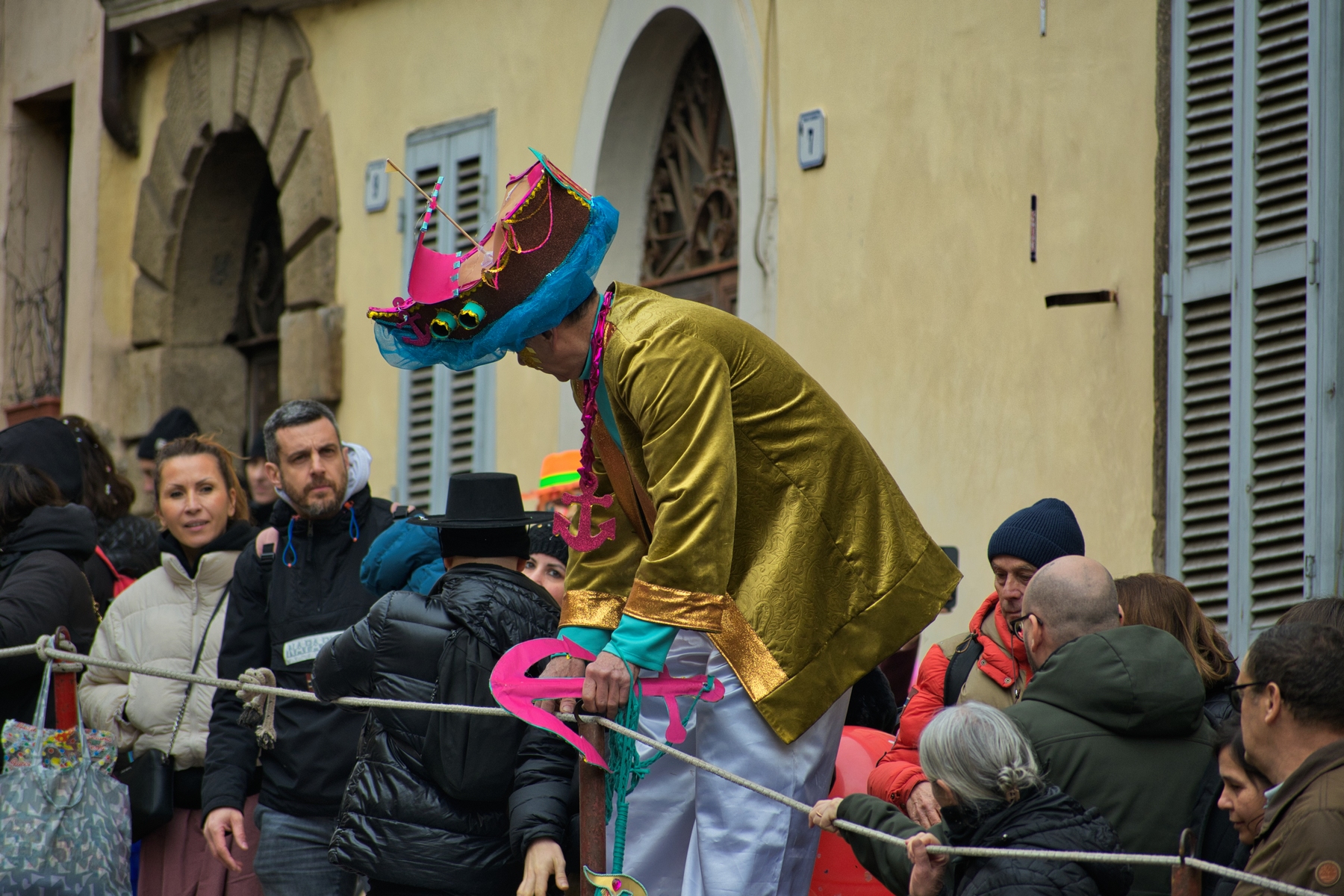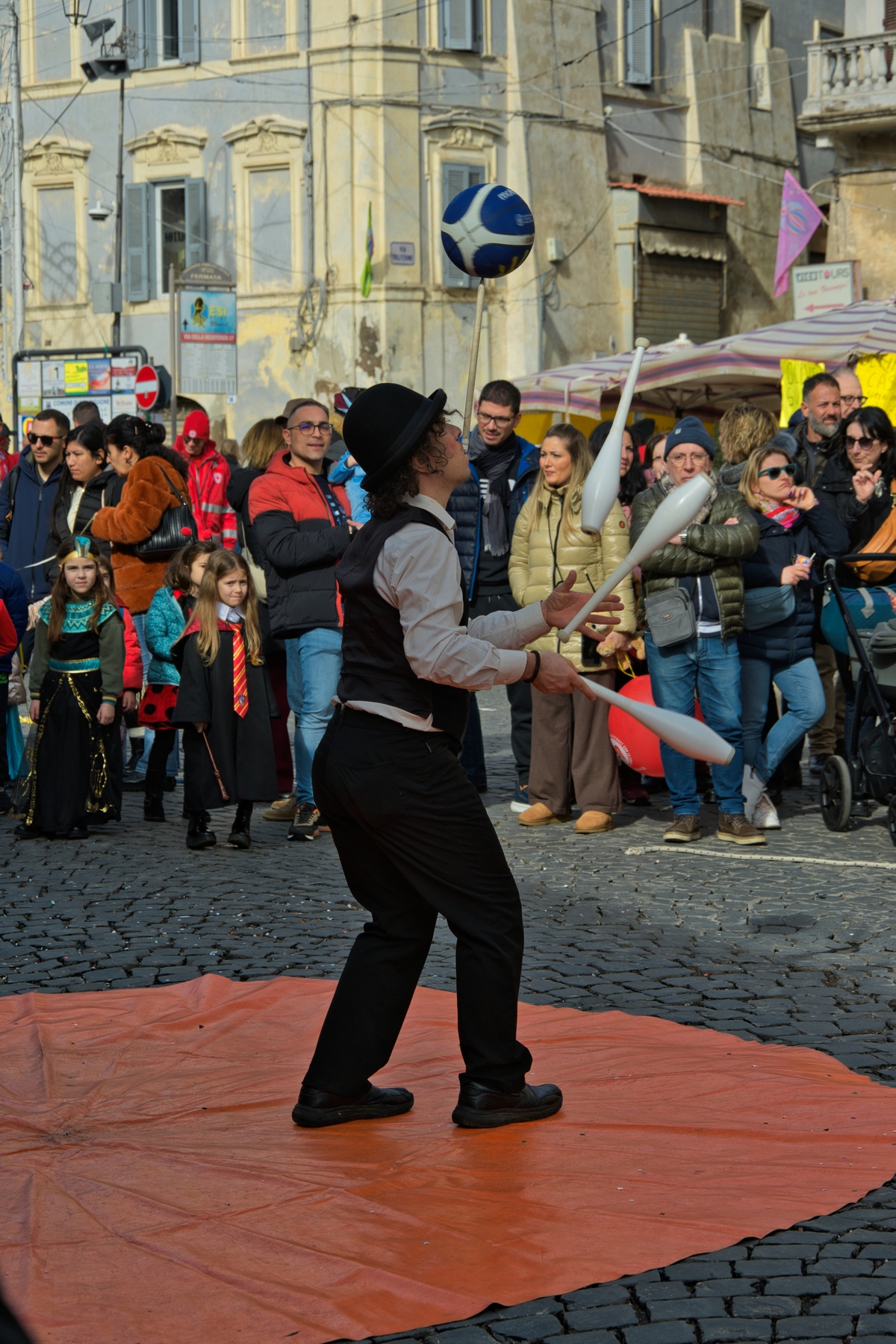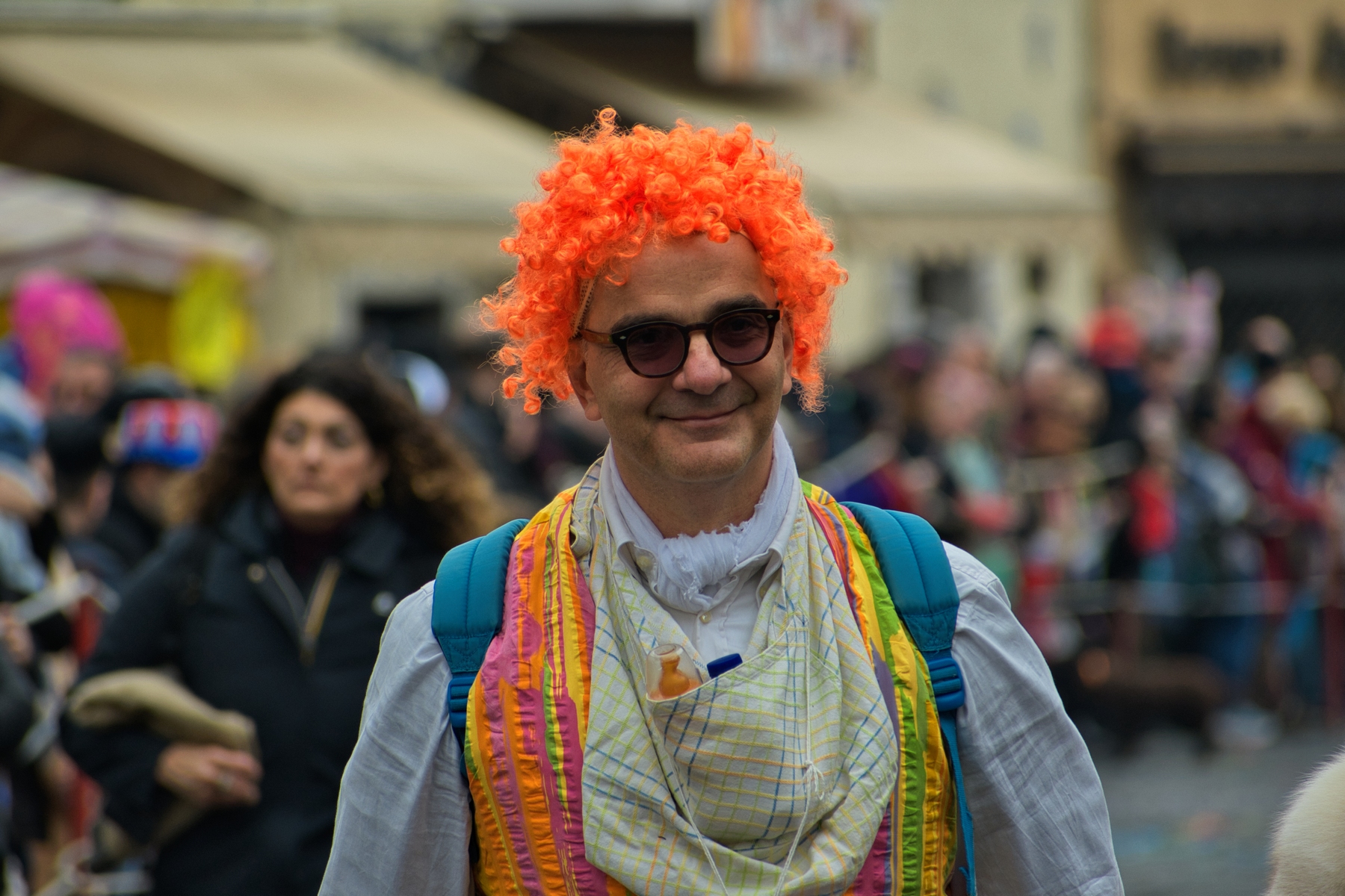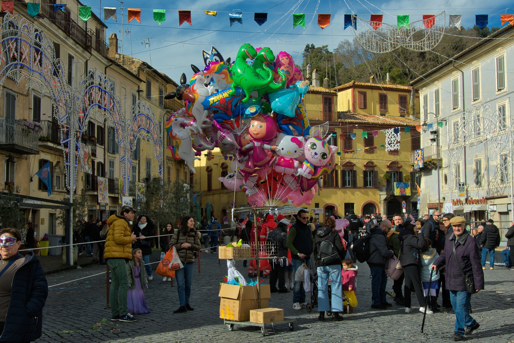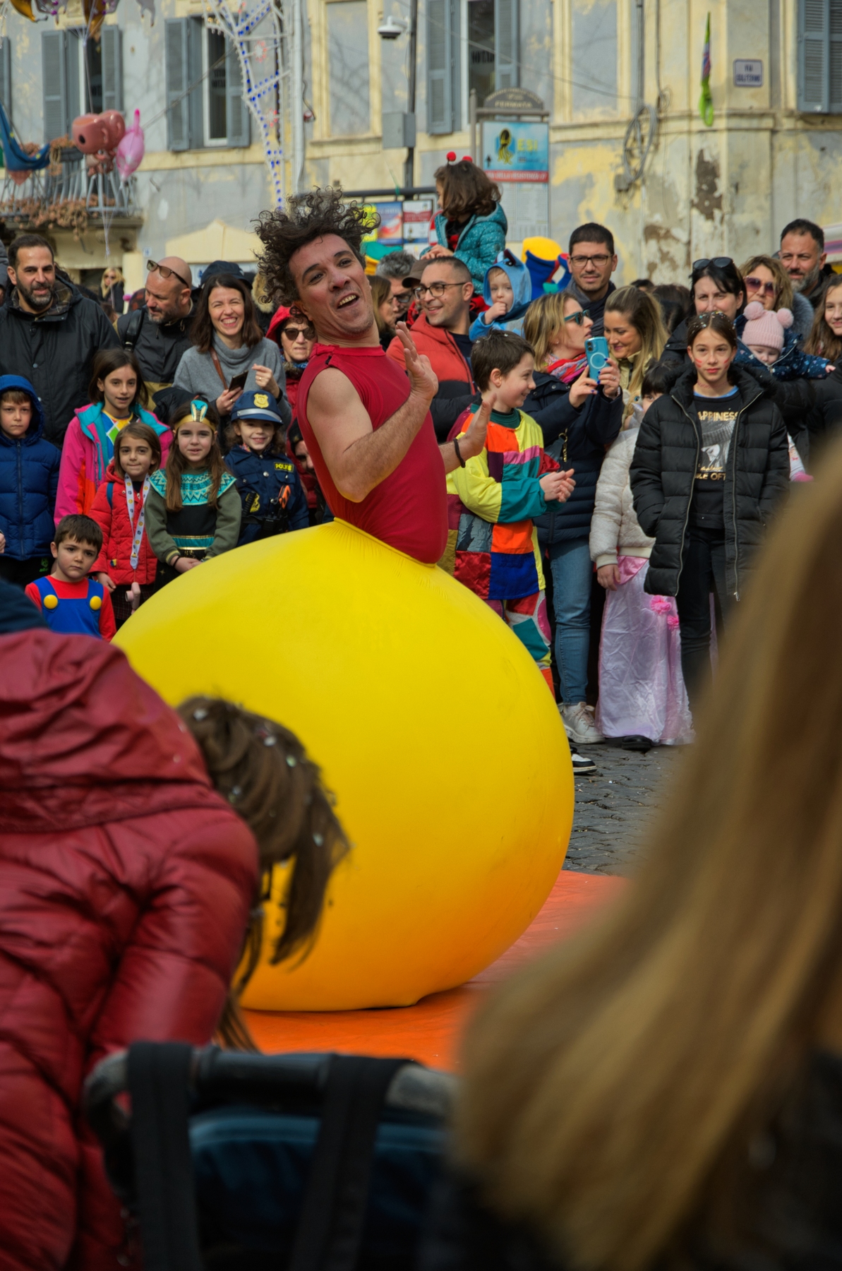 Una giornata carnevalesca, nel bel paese di Ronciglione (Lazio, VT), attendendo la sfilata dei carri e delle maschere, per strada, tra la gente.