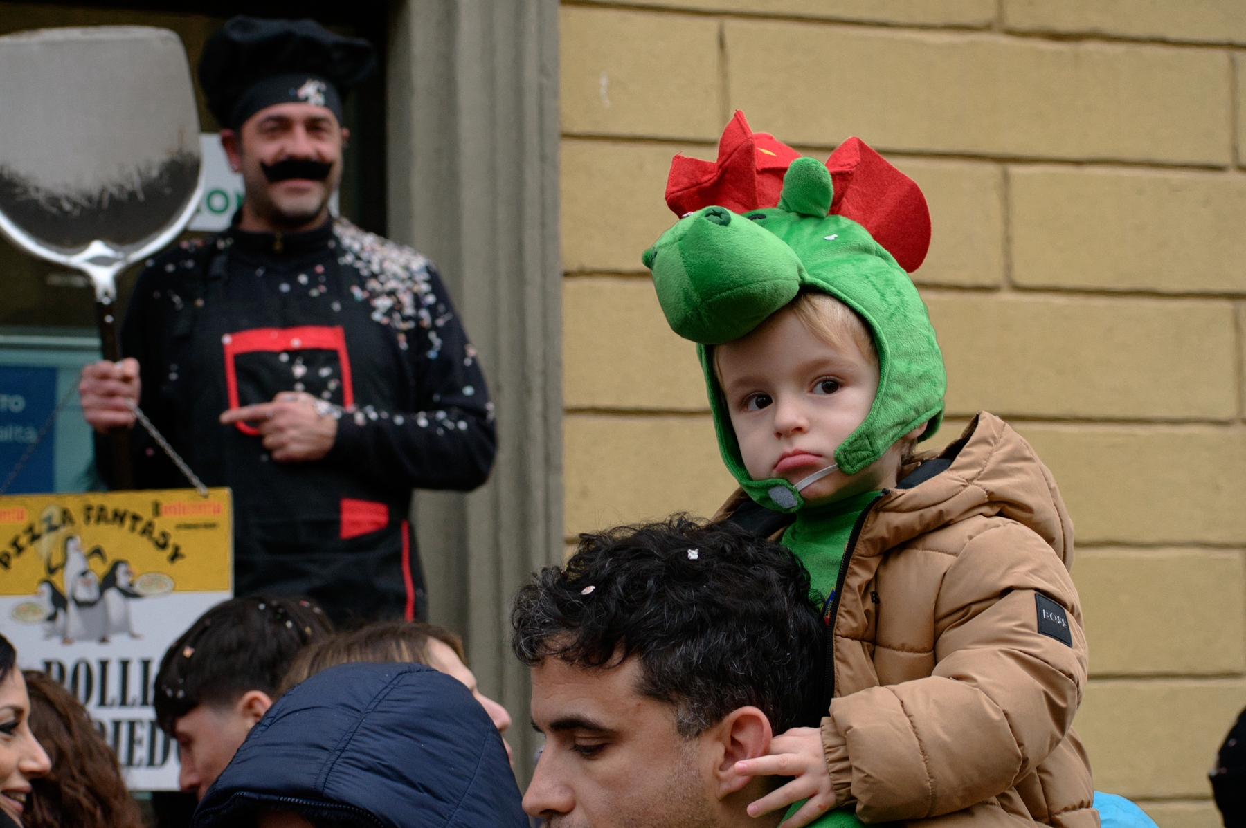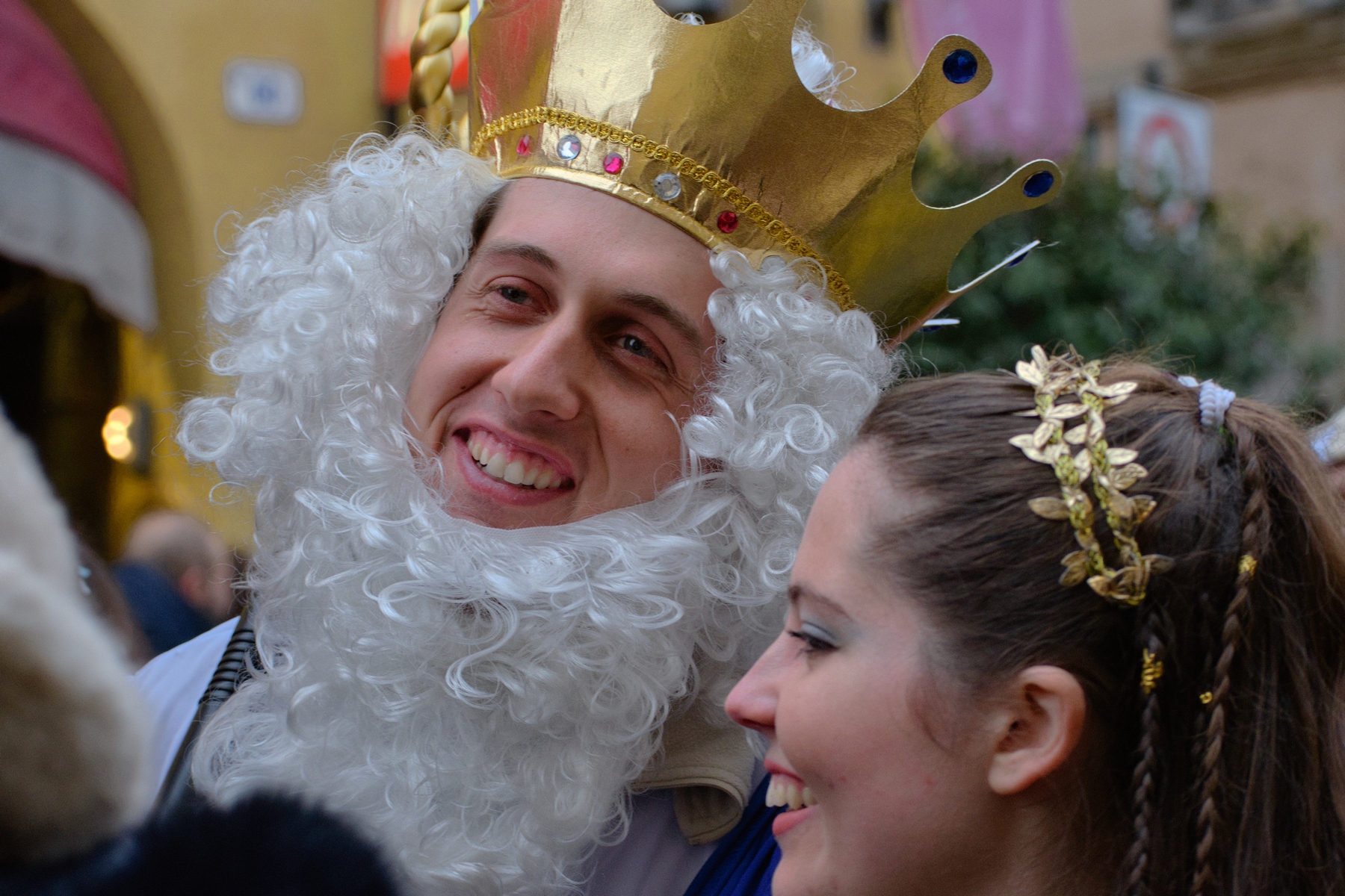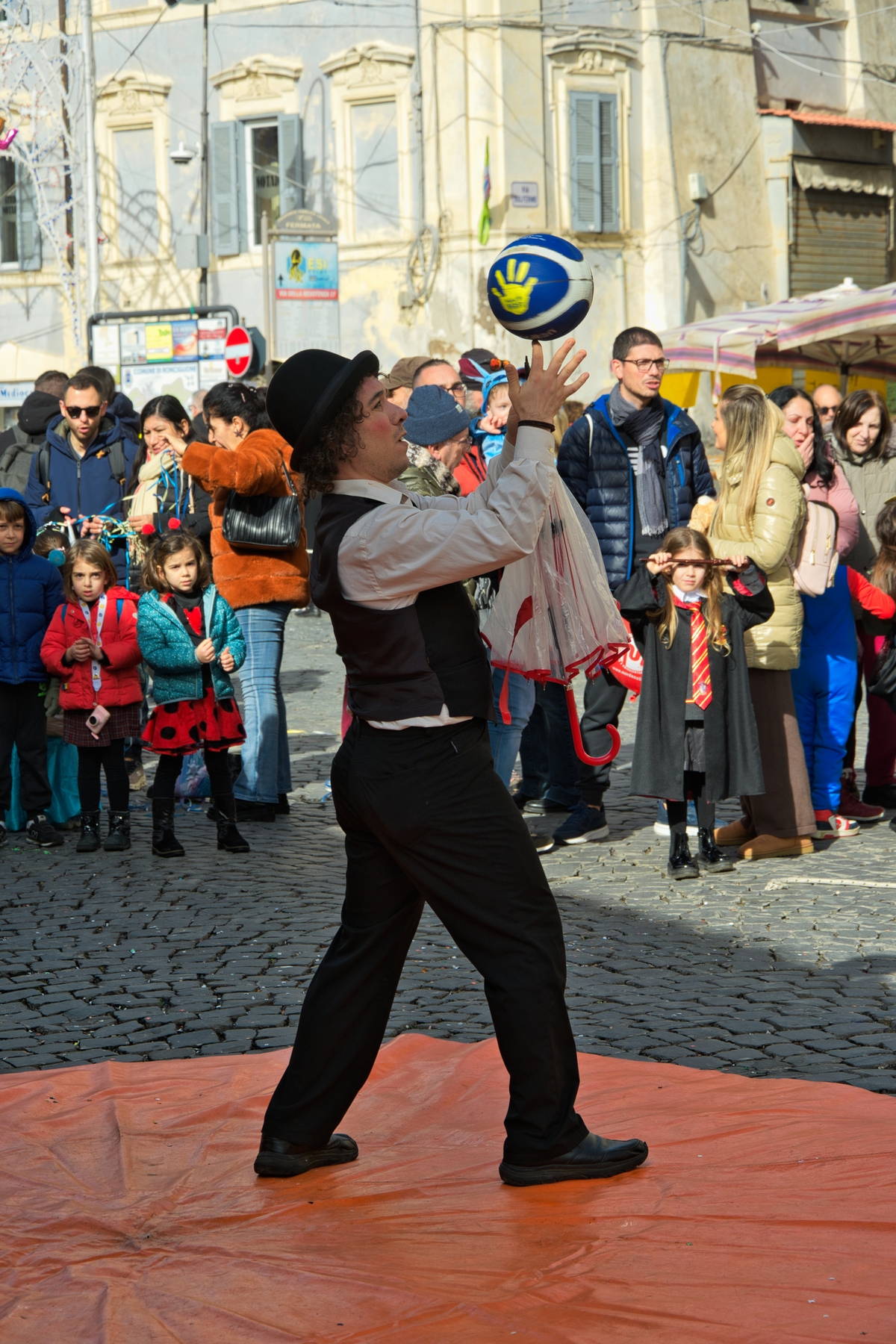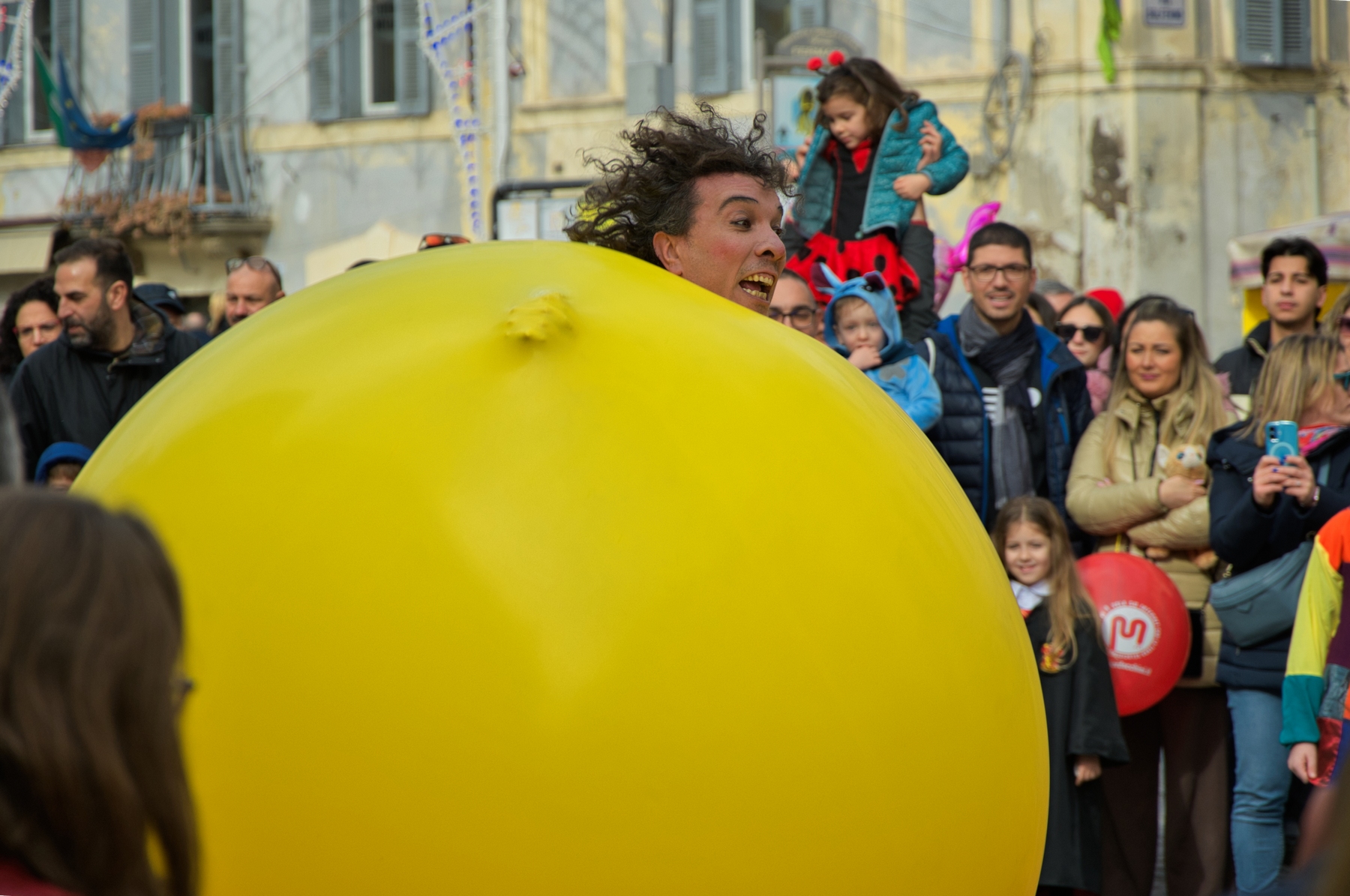 Una giornata carnevalesca, nel bel paese di Ronciglione (Lazio, VT), attendendo la sfilata dei carri e delle maschere, per strada, tra la gente.