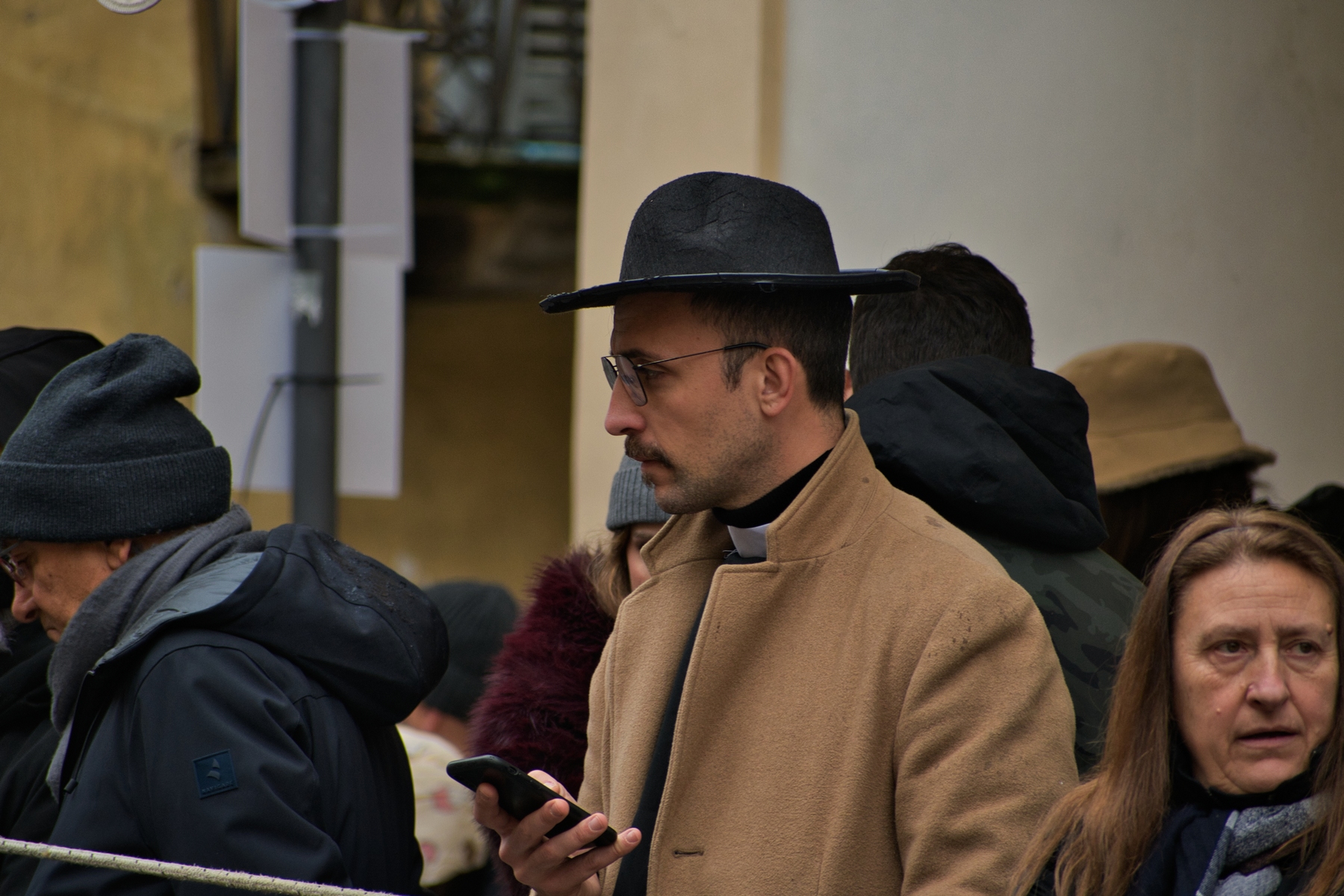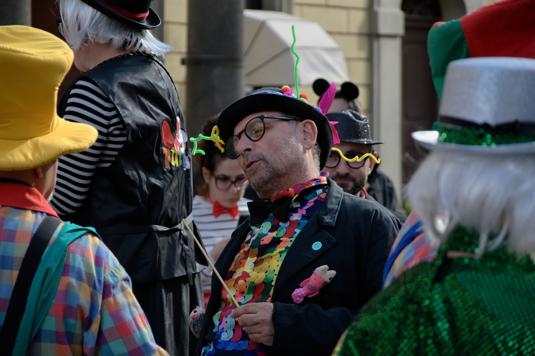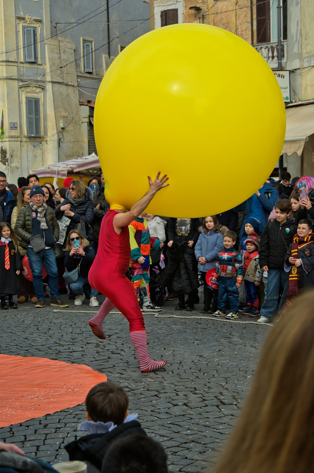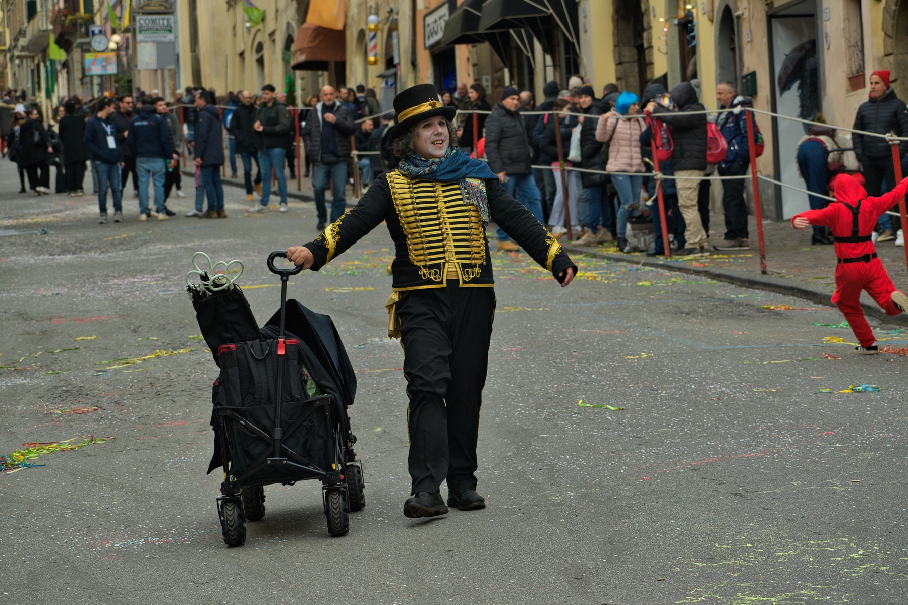 Una giornata carnevalesca, nel bel paese di Ronciglione (Lazio, VT), attendendo la sfilata dei carri e delle maschere, per strada, tra la gente.