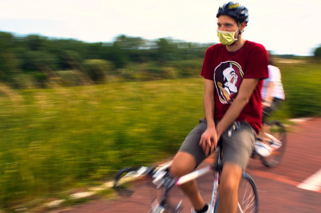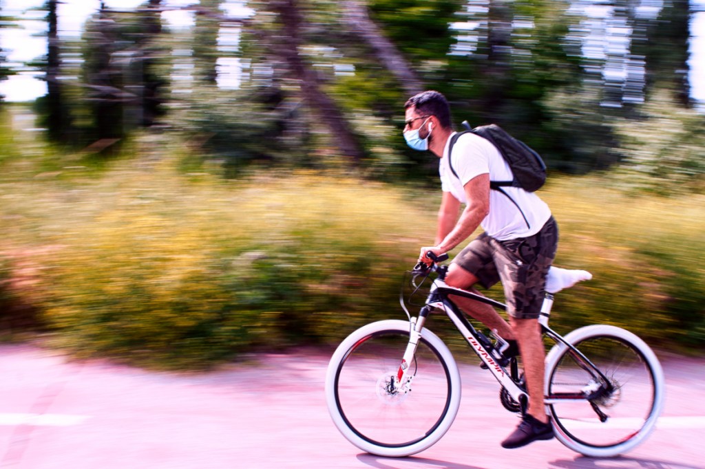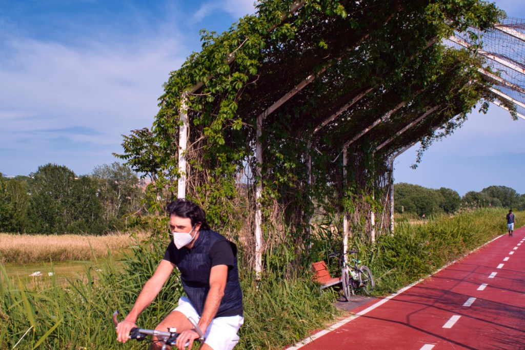 Le persone sono però ancora (giustamente) spaventate, caute, generalmente rispettose delle regole. Per le strade, nei parchi, sulle piste ciclabili, si incontrano spesso persone durante attività sportive e/o motorie, che indossano le mascherine di protezione, di vario tipo, che in termini di ossigenazione dell’organismo durante pratiche muscolari non sono proprio l’ideale diciamo, può essere che facciano più male che bene, non consentendo un’adeguata ossigenazione, un giusto respiro, piuttosto un ricircolo di anidride carbonica e una discreta coltura di batteri sulle pareti della maschera, ben inumidite, germi che rientrano in circolo.