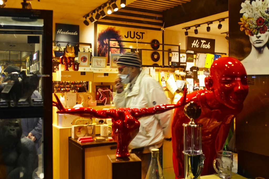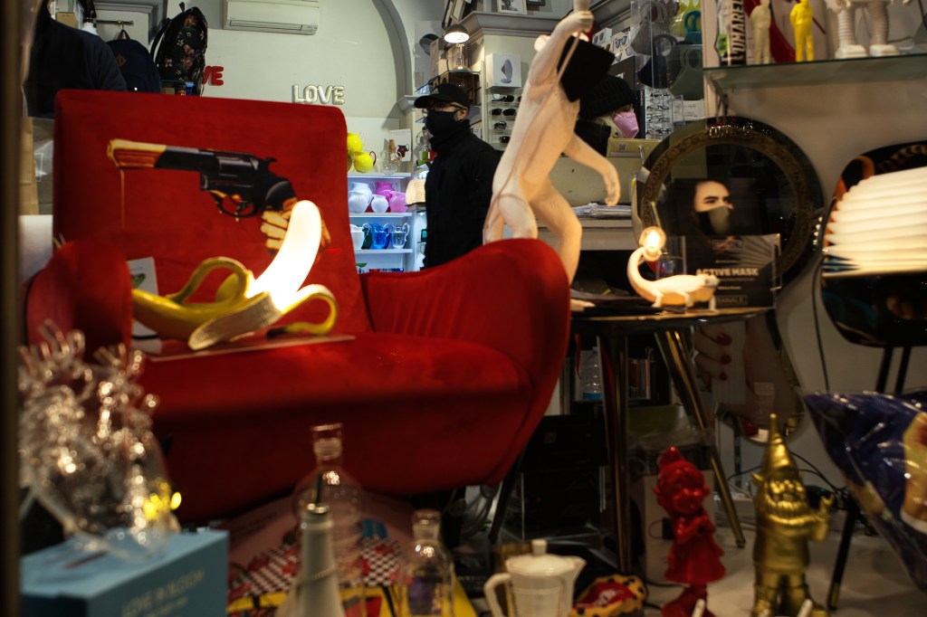 Nella città di Roma, appena uscita dal lockdown e in mezzo al coprifuoco, nella Capitale giallo-rossa, persone mascherate, distanziate, alienate, si intravedono – in trasparenza – attraverso le vetrine dei negozi e dei locali. In una Città sempre stata piena di vita, di traffico, di caos cittadino, il periodo quarantenico ha mostrato una realtà surreale, facendo sparire dalle strade e dai locali le folle di turisti e di cittadini, una volta intenti alle attività ludiche dello shopping o agli affari.