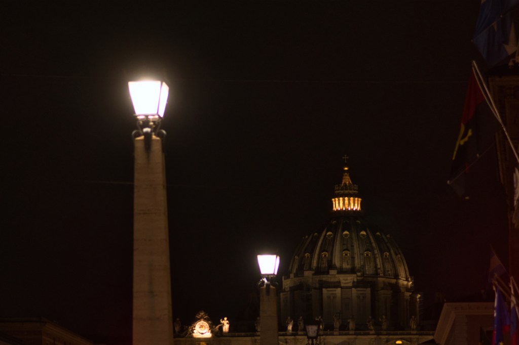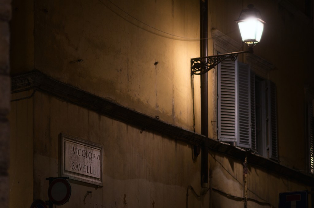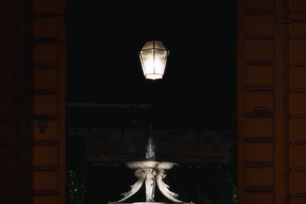 Nella città di Roma, vecchie lanterne cittadine illuminano, con nuove luci a LED, i vicoli del centro storico, donando loro quell’atmosfera magica e un po’ retrò, che stranamente si abbina alla mancanza di persone a passeggio, grazie all’ora tarda e al coprifuoco imminente.